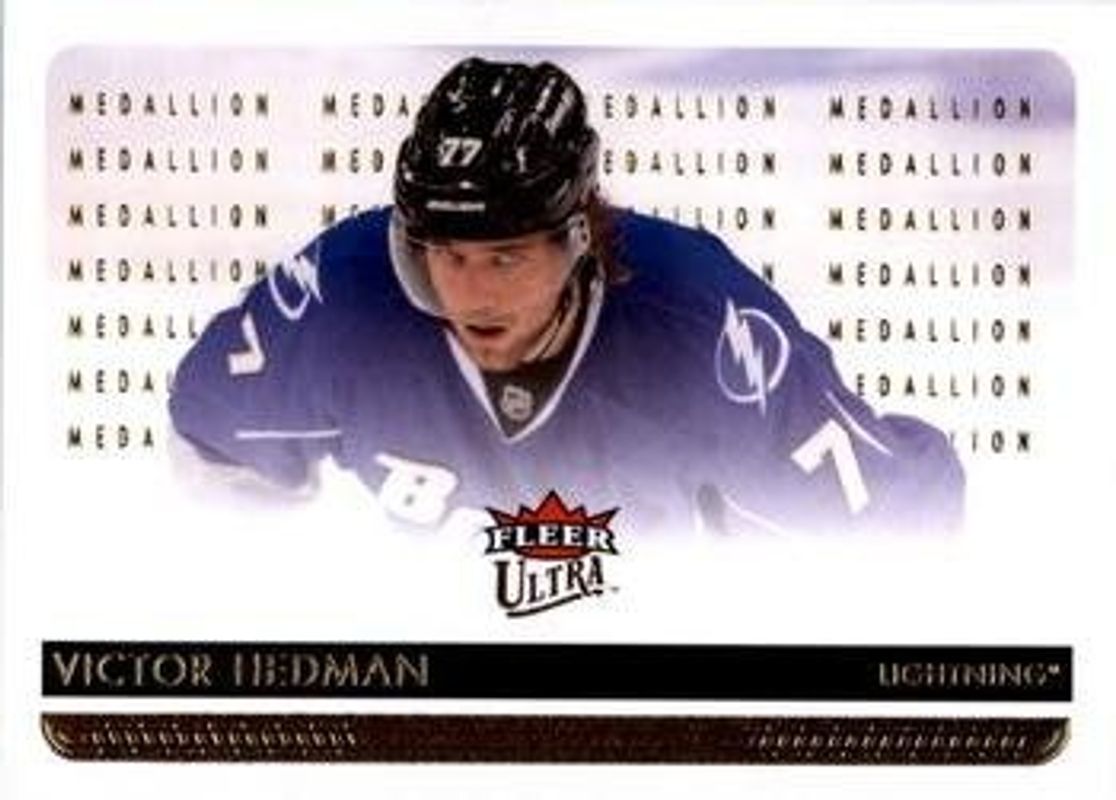 The Victor Hedman 2014 Fleer Ultra #173 Gold Medallion card is 1 of 4 Victor Hedman's card variations in the 2014 Fleer Ultra set being tracked by Sports Card Investor, including Base, Platinum Medallion /25, and Violet /1.