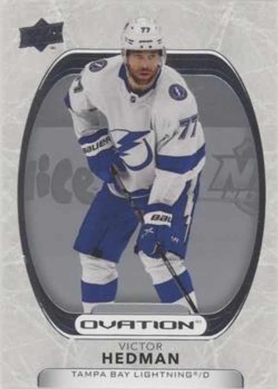 The Victor Hedman 2021 Upper Deck Ovation #95 Base card is 1 of 18 Victor Hedman's card variations in the 2021 Upper Deck Ovation set being tracked by Sports Card Investor, including Checkerboard, Gold Circular Wonder, Gold Foil, Silver Foil, and Standing Ovation /500.