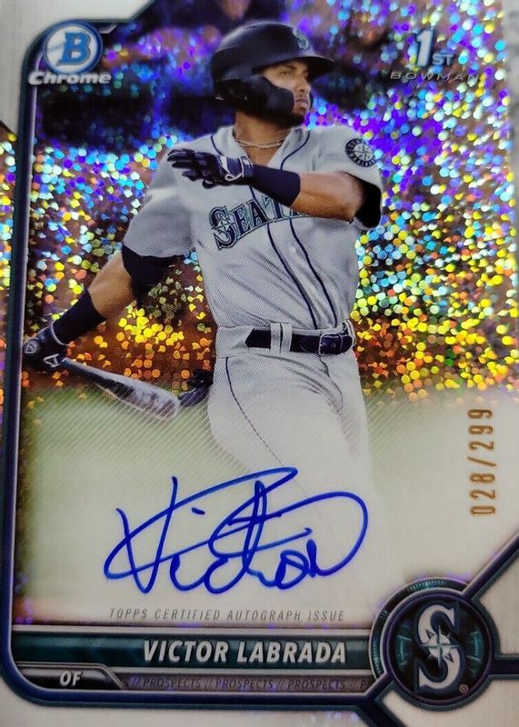 VICTOR LABRADA 2022 BOWMAN CHROME 1ST SPECKLE REFRACTOR RC AUTO PARALLEL 203/299