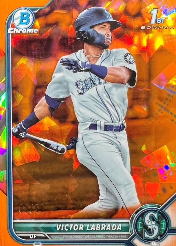 2022 Bowman Sapphire Victor Labrada Chrome Orange 1st #/50 Mariners