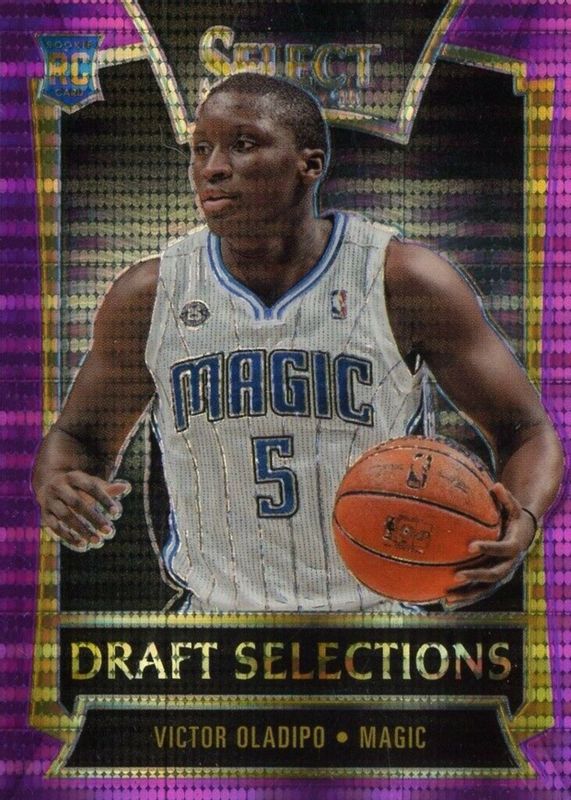 The Victor Oladipo 2013 Select #2 Draft Selections - Purple /99 Rookie card in Raw condition has not changed in price in the last 30 days and was last sold for $7.72 .