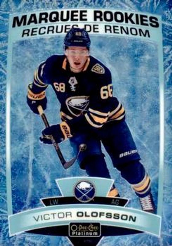 The Victor Olofsson 2019 O-Pee-Chee Platinum #194 Arctic Freeze /99 Rookie card is 1 of 29 Victor Olofsson's card variations in the 2019 O-Pee-Chee Platinum set being tracked by Sports Card Investor, including Base, Matte Pink, Rainbow, Sunset, and Violet Pixels /399.
