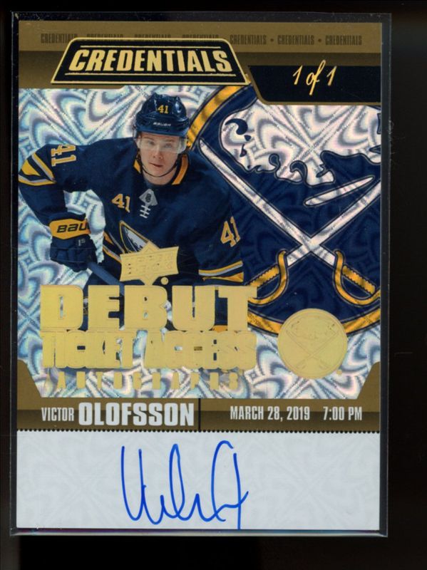 Victor Olofsson 2019 Upper Deck Credentials #RTAA-VO Debut Ticket Access Autographs Gold /1 Rookie RAW Price Guide