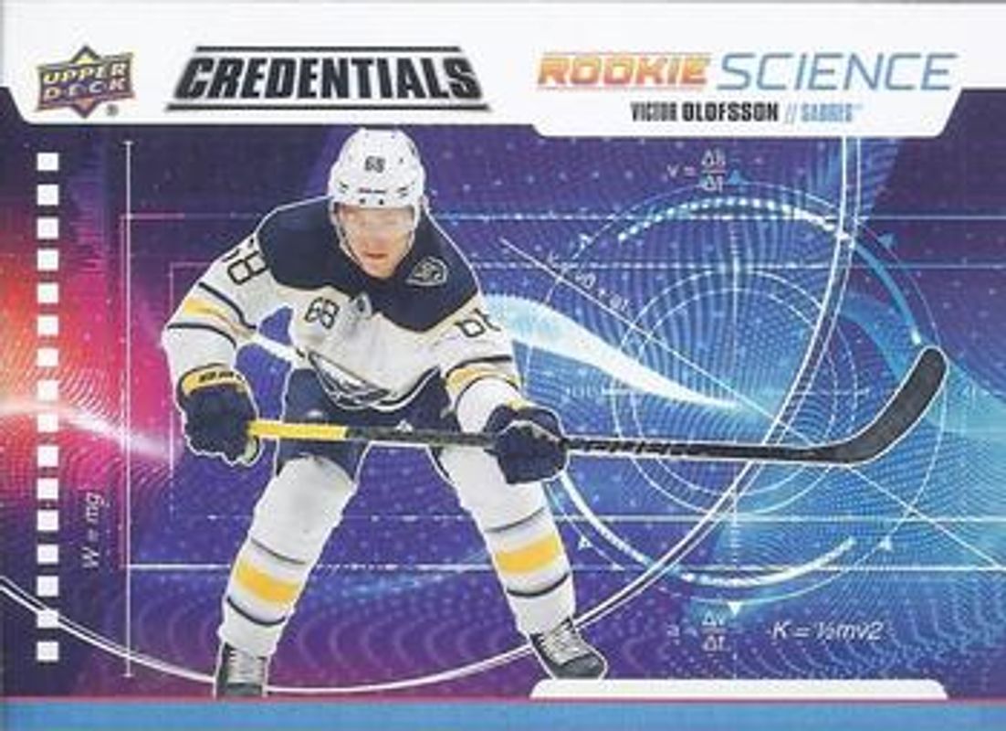 The Victor Olofsson 2019 Upper Deck Credentials #RS-09 Rookie Science card is 1 of 19 Victor Olofsson's card variations in the 2019 Upper Deck Credentials set being tracked by Sports Card Investor, including Base /699, Red /99, Green /25, Purple /10, and Black /1.