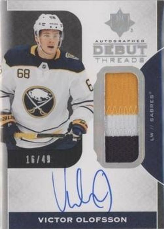 Victor Olofsson 2020 Upper Deck Ultimate Collection #DT-VO 2019 Upper Deck Ultimate Collection Update: Autographed Debut Threads /99 RAW