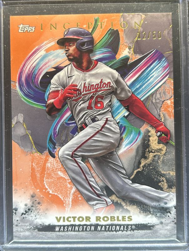 The Victor Robles 2023 Topps Inception #2 Orange /50 card is 1 of 8 Victor Robles' card variations in the 2023 Topps Inception set being tracked by Sports Card Investor, including Base, Green, Purple /150, Magenta /99, and Red /75.