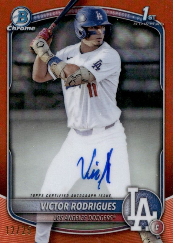 Best Prices Available For Sale of Victor Rodrigues 2025 Bowman #CPA-VR Chrome Prospect Auto - Orange Refractor /25 (1st)