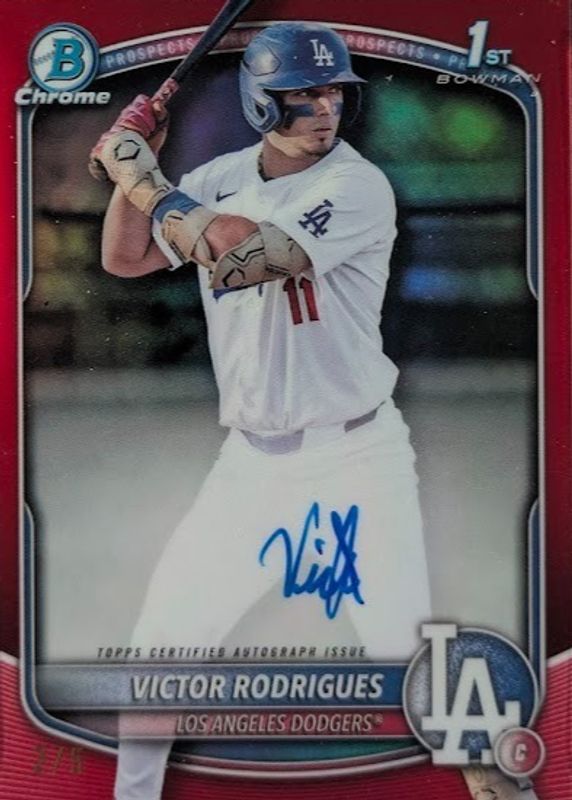 Victor Rodrigues 2025 Bowman #CPA-VR Chrome Prospect Auto - Red Refractor /5 (1st) RAW Price Guide