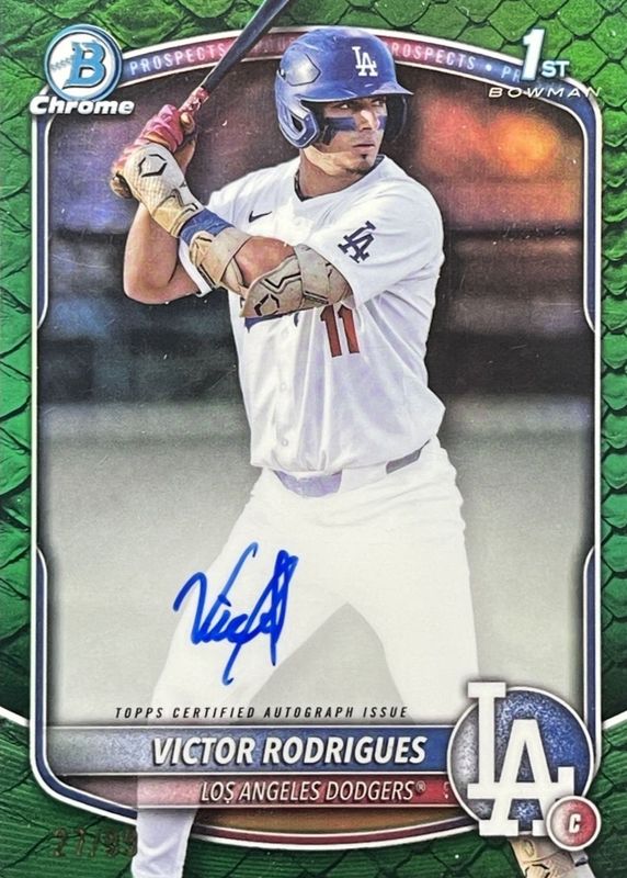 2025 Bowman - Chrome Victor Rodrigues #CPA-VR Green Reptilian Auto 66/99 Dodgers
