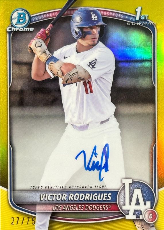 2025 Bowman Chrome 1st Victor Rodrigues Yellow Refractor Auto /75