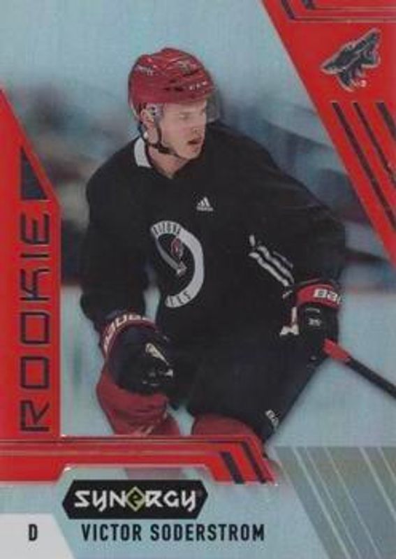 The Victor Soderstrom 2020 Upper Deck Synergy #119 Red Rookie card is 1 of 14 Victor Soderstrom's card variations in the 2020 Upper Deck Synergy set being tracked by Sports Card Investor, including Base /21, Red Bounty, Purple /35, Autographs Rookies, and Exceptional Futures /749.