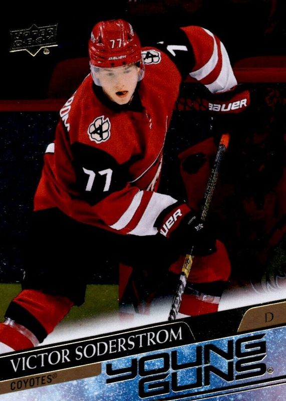 This card is 1 of 9 Victor Soderstrom's card variations in the 2020 Upper Deck set being tracked by Sports Card Investor, including Young Guns Base, Young Guns - Clear Cut, Young Guns - Clear Cut Exclusives, Young Guns - French, and Young Guns - Jumbo.