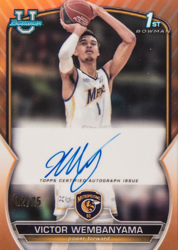 Auctions Ending Soon for Victor Wembanyama 2022 Bowman Chrome University #101 Prospect Autographs - Orange Refractor /25 (1st) RAW
