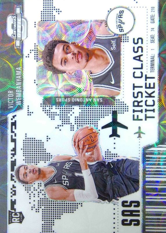 The Victor Wembanyama 2023 Contenders Optic #2 First Class Ticket - International Black & White /25 Rookie card in Raw condition has not changed in price in the last 30 days and was last sold for $179.00 .