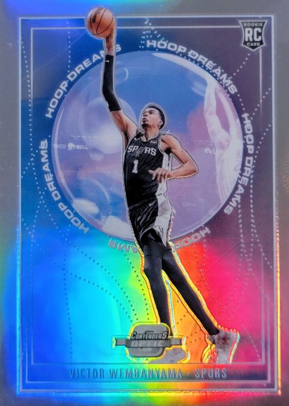 The Victor Wembanyama 2023 Contenders Optic #19 Hoop Dreams Rookie card in Raw condition has moved up $0.33 (+1.0%) in the last 30 days and was last sold for $34.33 .