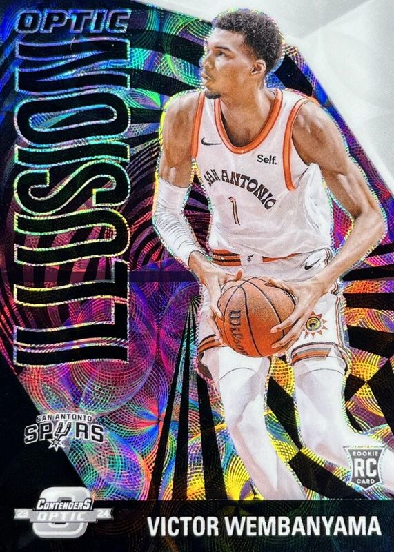 The Victor Wembanyama 2023 Contenders Optic #18 Optic Illusion - International Black & White /25 Rookie card in Raw condition has not changed in price in the last 30 days and was last sold for $137.50 .