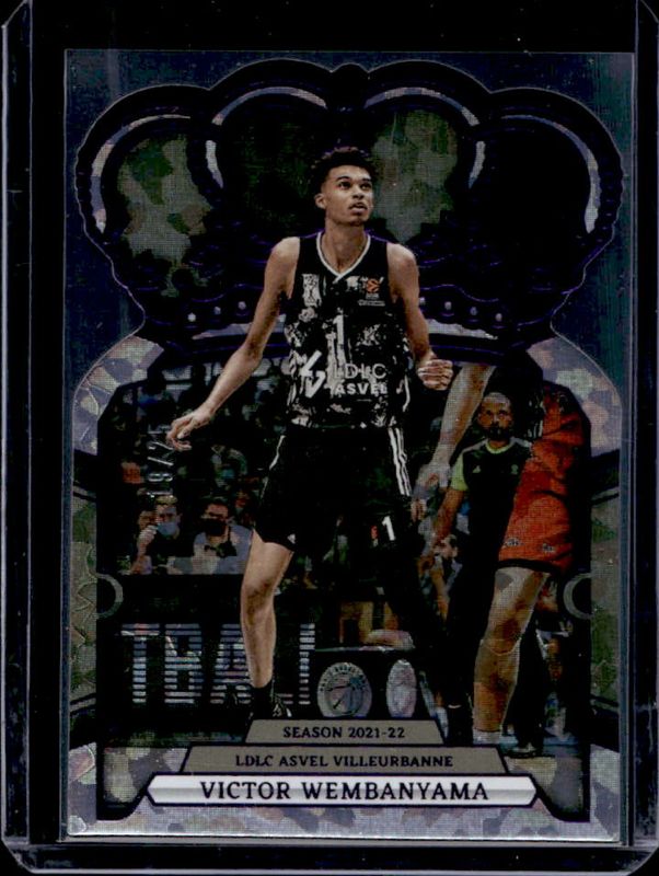 The Victor Wembanyama 2023 Crown Royale EuroLeague #3 Purple Crystal /25 Rookie card is 1 of 22 Victor Wembanyama's card variations in the 2023 Crown Royale EuroLeague set being tracked by Sports Card Investor, including Base, Red Crystal /49, Gold Crystal /10, Platinum Crystal /1, and Pillars of the Game /99.
