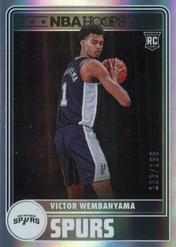 The Victor Wembanyama 2023 Hoops #298 Tribute - Premium Box Set /199 Rookie card in Raw condition has not changed in price in the last 30 days and was last sold for $232.50 .