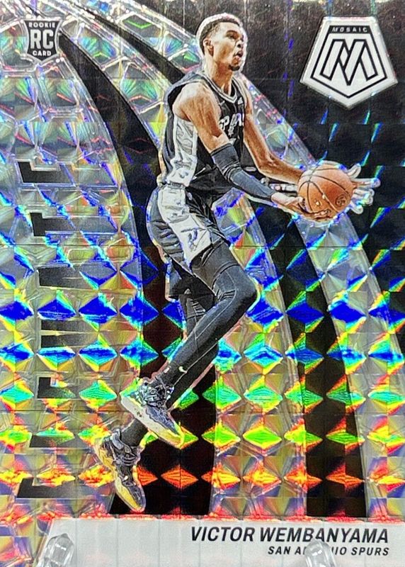 The Victor Wembanyama 2023 Mosaic #18 Elevate - Mosaic Rookie card in Raw condition has moved up $0.01 (+0.1%) in the last 30 days and was last sold for $15.00 .
