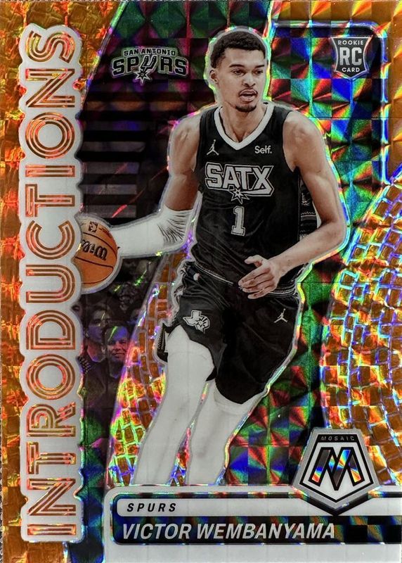 Auctions Ending Soon for Victor Wembanyama 2023 Mosaic #8 Introductions - Orange /49 Rookie RAW