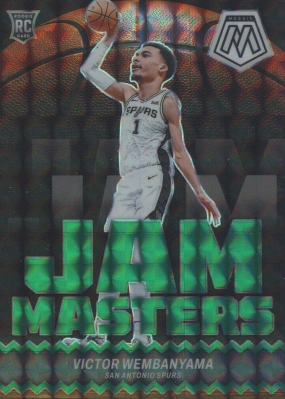 The Victor Wembanyama 2023 Mosaic #3 Jam Masters - Green Rookie card in Raw condition has moved up $2.49 (+21.7%) in the last 30 days and was last sold for $13.99 .