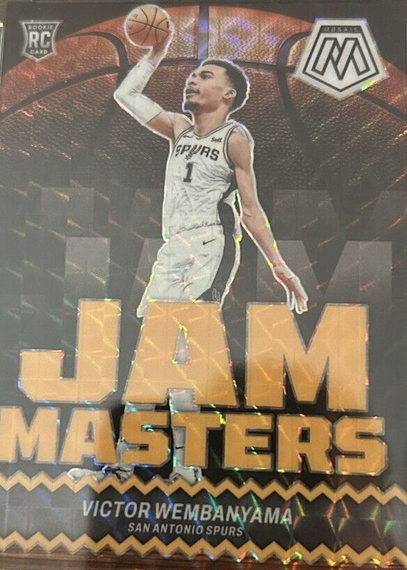 The Victor Wembanyama 2023 Mosaic #3 Jam Masters - Orange Fluorescent /25 Rookie card in Raw condition has not changed in price in the last 30 days and was last sold for $375.00 .