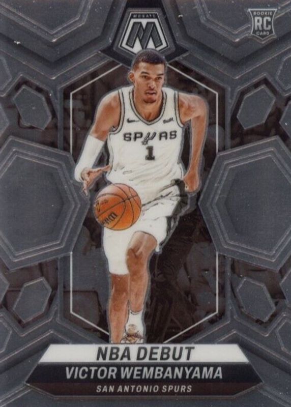 The Victor Wembanyama 2023 Mosaic #257 NBA Debut Rookie card in Raw condition has moved down -$0.47 (-15.5%) in the last 30 days and was last sold for $2.58 .