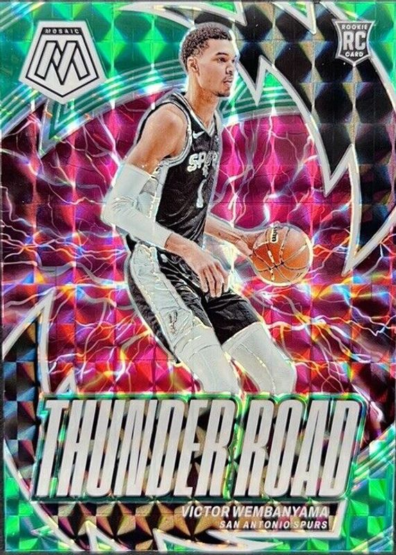 2023-24 Mosaic Victor Wembanyama RC THUNDER ROAD #8 Green Mosaic Prizm Spurs