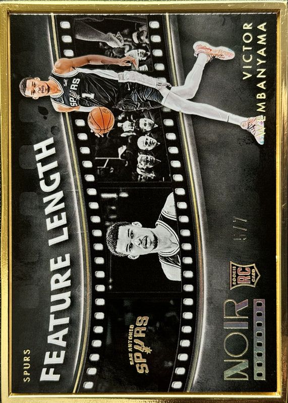 The Victor Wembanyama 2023 Noir #252 Feature Length - Holo Gold FOTL /7 Rookie card in Raw condition has moved down -$461 (-32.9%) in the last 30 days and was last sold for $938.88 .