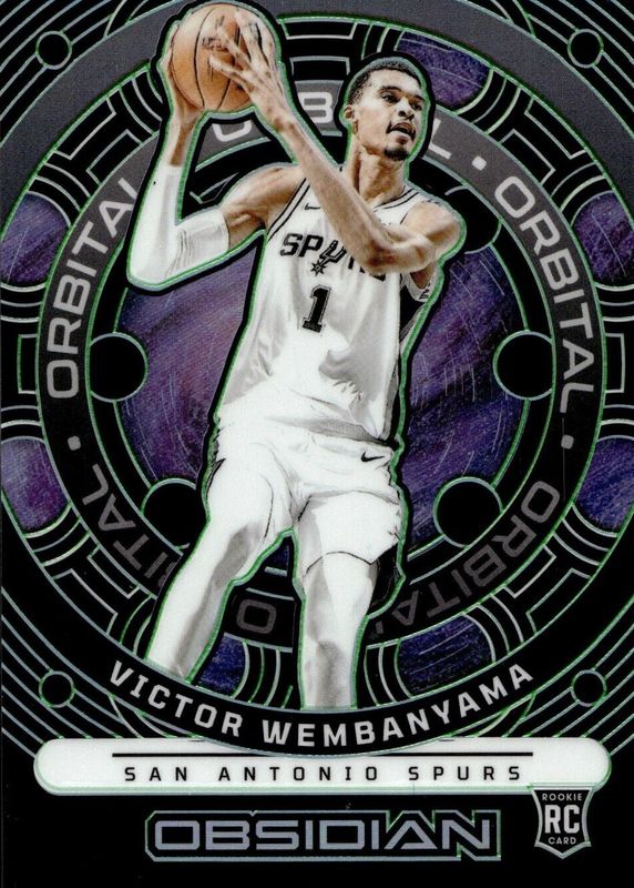 The Victor Wembanyama 2023 Obsidian #18 Orbital - Electric Etch Green Flood /25 Rookie card in Raw condition has not changed in price in the last 30 days and was last sold for $555.00 .