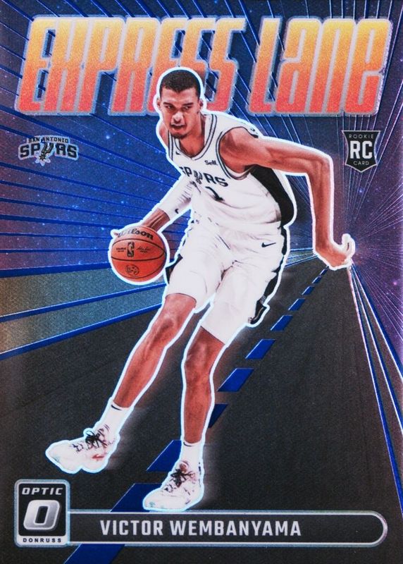 The Victor Wembanyama 2023 Optic #8 Express Lane - Purple Rookie card in Raw condition has moved up $6.20 (+248%) in the last 30 days and was last sold for $8.70 .