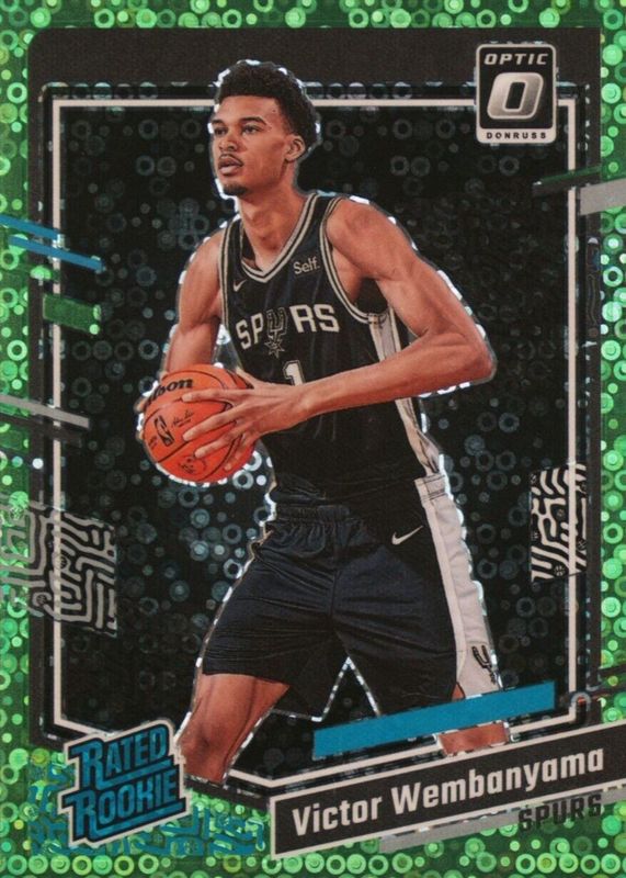 The Victor Wembanyama 2023 Optic #225 Fast Break Neon Green /5 Rookie card in Raw condition has not changed in price in the last 30 days and was last sold for $4,701.00 .