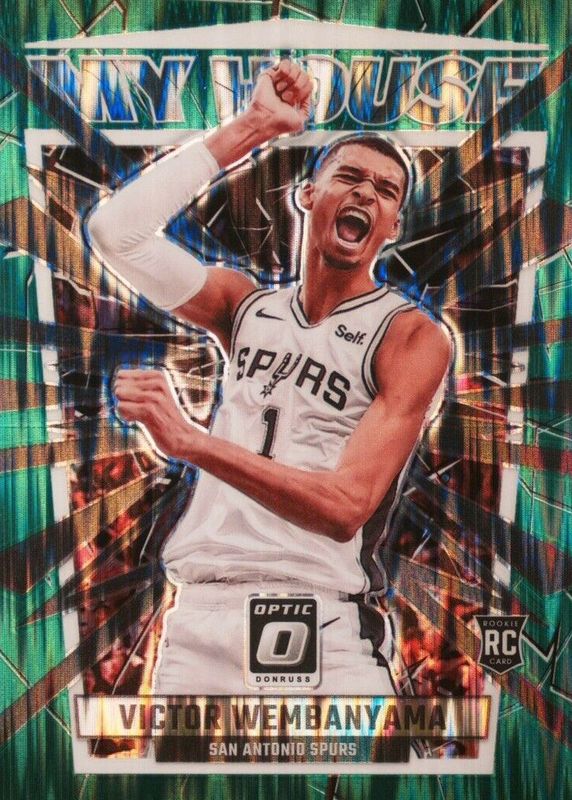The Victor Wembanyama 2023 Optic #6 My House - Green Shock Rookie card in Raw condition has moved up $9.99 (+40.0%) in the last 30 days and was last sold for $34.99 .