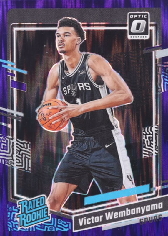 The Victor Wembanyama 2023 Optic #225 Purple Shock Rookie card in Raw condition has moved up $9.98 (+20.0%) in the last 30 days and was last sold for $59.98 .