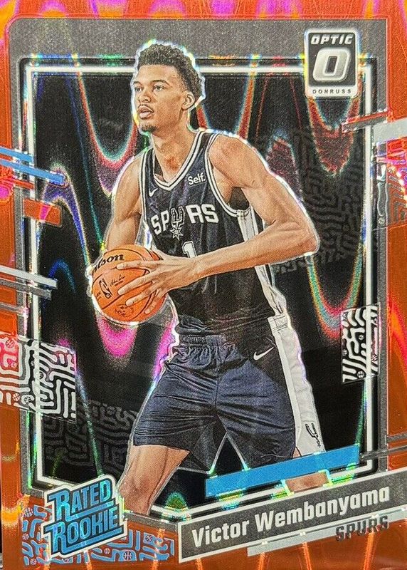 VICTOR WEMBANYAMA 2023-24 DONRUSS OPTIC #225 RED SEISMIC RC RATED ROOKIE 98/130