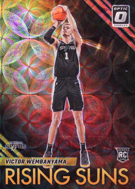 The Victor Wembanyama 2023 Optic #11 Rising Suns - International Red & Gold /99 Rookie card in Raw condition has not changed in price in the last 30 days and was last sold for $44.53 .