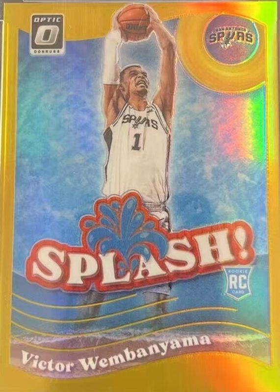 Auctions Ending Soon for Victor Wembanyama 2023 Optic #6 Splash! - Gold /10 Rookie RAW