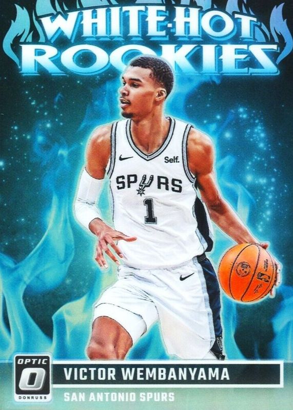 The Victor Wembanyama 2023 Optic #2 White Hot Rookies - Holo card in Raw condition has moved up $0.28 (+4.0%) in the last 30 days and was last sold for $7.28 .