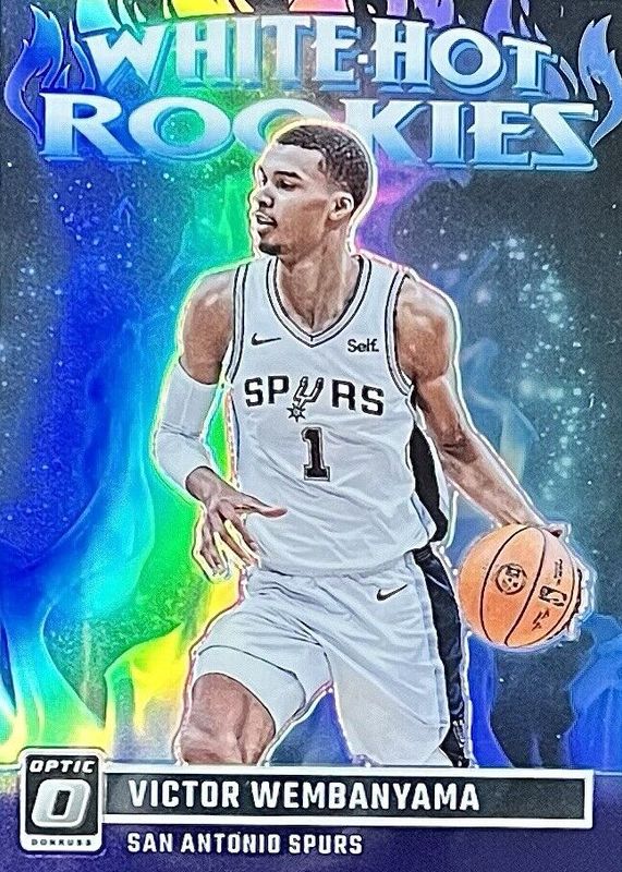 The Victor Wembanyama 2023 Optic #2 White Hot Rookies - Purple card in Raw condition has moved up $1.08 (+14.1%) in the last 30 days and was last sold for $8.75 .