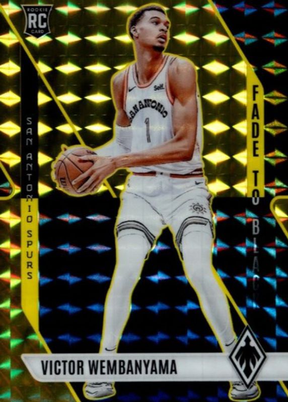 The Victor Wembanyama 2023 Phoenix #11 Fade to Black - Gold /10 Rookie card in Raw condition has not changed in price in the last 30 days and was last sold for $950.00 .