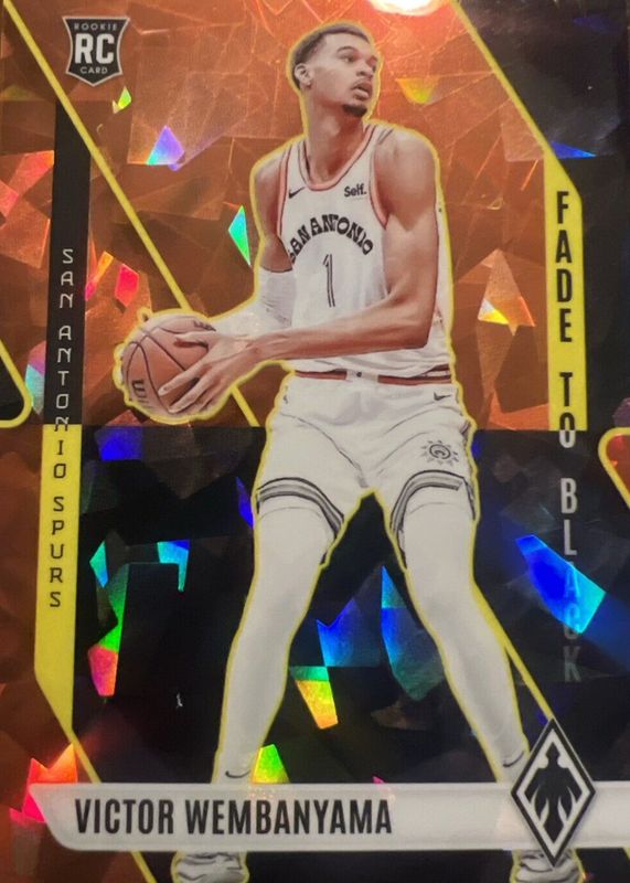 The Victor Wembanyama 2023 Phoenix #11 Fade to Black - Orange Ice /249 Rookie card in Raw condition has not changed in price in the last 30 days and was last sold for $71.00 .