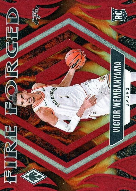 The Victor Wembanyama 2023 Phoenix #18 Fire Forged - Red /125 Rookie card in Raw condition has moved up $28.00 (+38.9%) in the last 30 days and was last sold for $100.00 .