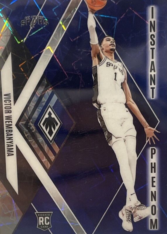 The Victor Wembanyama 2023 Phoenix #13 Instant Phenom - Blue Lazer /275 Rookie card in Raw condition has not changed in price in the last 30 days and was last sold for $41.04 .