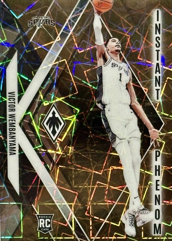 The Victor Wembanyama 2023 Phoenix #13 Instant Phenom - Bronze Lazer /49 Rookie card in Raw condition has not changed in price in the last 30 days and was last sold for $205.99 .