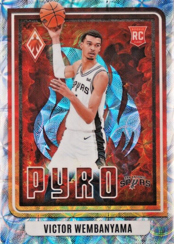 The Victor Wembanyama 2023 Phoenix #5 Pyro - International Rookie card in Raw condition has moved up $65.00 (+108%) in the last 30 days and was last sold for $125.00 .
