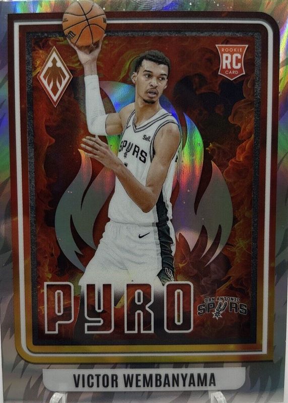 The Victor Wembanyama 2023 Phoenix #5 Pyro - Silver Rookie card in Raw condition has moved up $15.00 (+44.1%) in the last 30 days and was last sold for $49.00 .