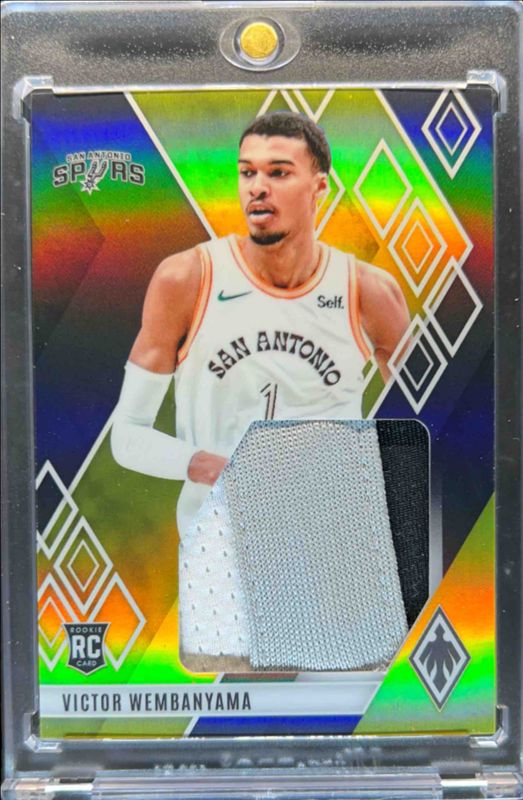 The Victor Wembanyama 2023 Phoenix #RJM-WEM Rookie Jumbo Memorabilia - Yellow /49 card is 1 of 238 Victor Wembanyama's card variations in the 2023 Phoenix set being tracked by Sports Card Investor, including Base, Blue Ice, Color Burst, Dream Weaver, and Hieroglyphs.