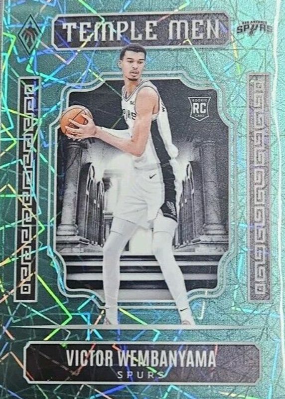 The Victor Wembanyama 2023 Phoenix #7 Temple Men - Teal Lazer Rookie card in Raw condition has moved up $1.50 (+9.4%) in the last 30 days and was last sold for $17.50 .