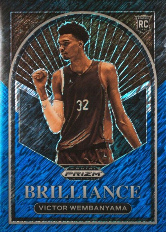 The Victor Wembanyama 2023 Prizm Draft Picks #1 Brilliance - Blue Shimmer /19 Rookie card in Raw condition has not changed in price in the last 30 days and was last sold for $338.33 .