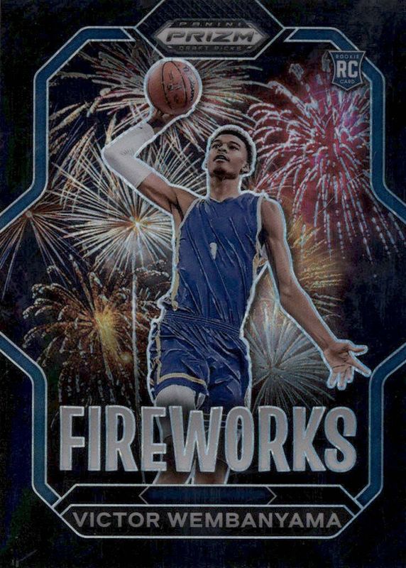The Victor Wembanyama 2023 Prizm Draft Picks #1 Fireworks - Black /1 Rookie card in Raw condition has not changed in price in the last 30 days and was last sold for $6,000.00 .